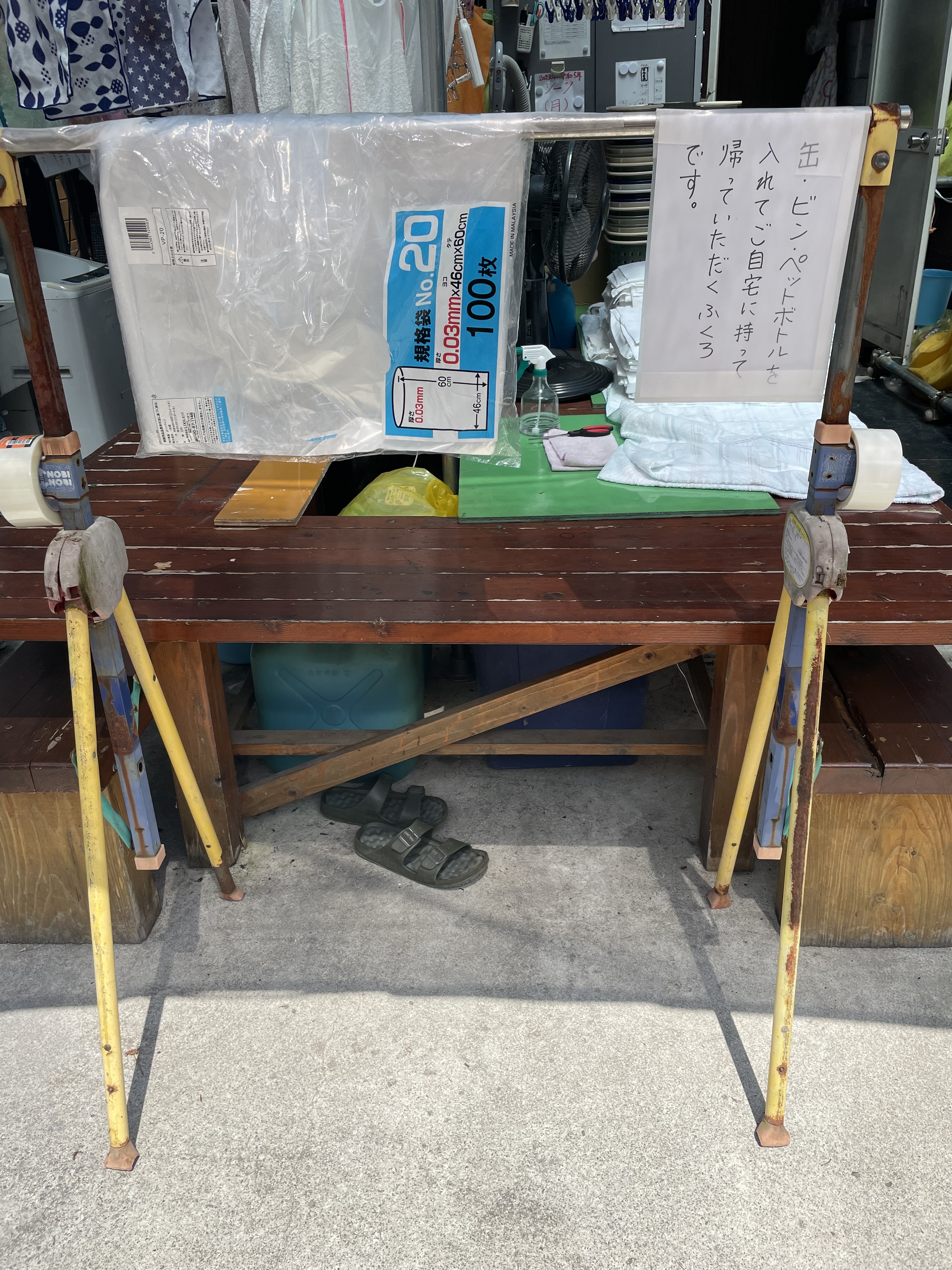 シーツ置場に缶、ビン、ペットボトル、を入れる