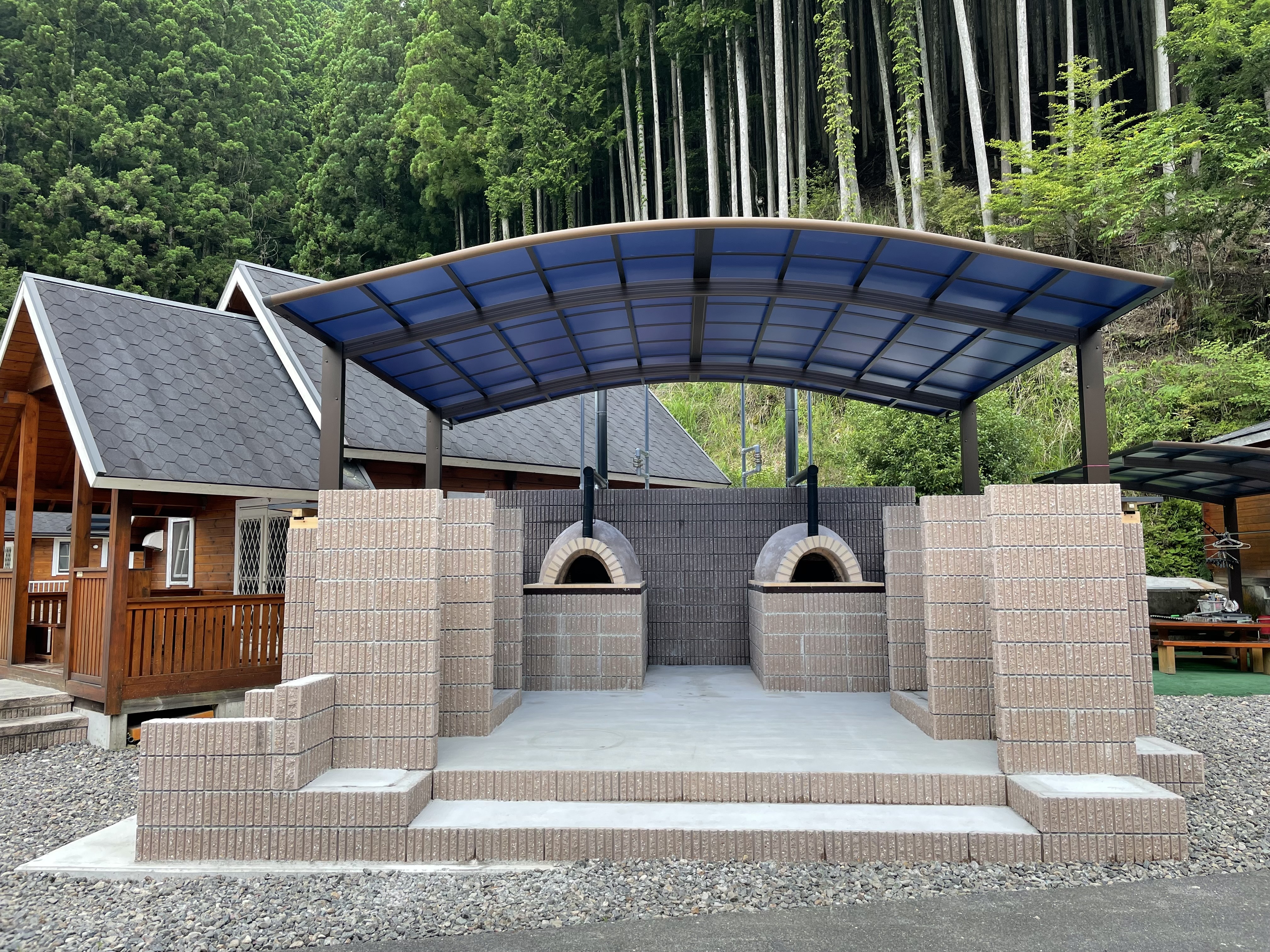 お客様が宿泊するバーベキュー台の上にレンガを2枚置いてます