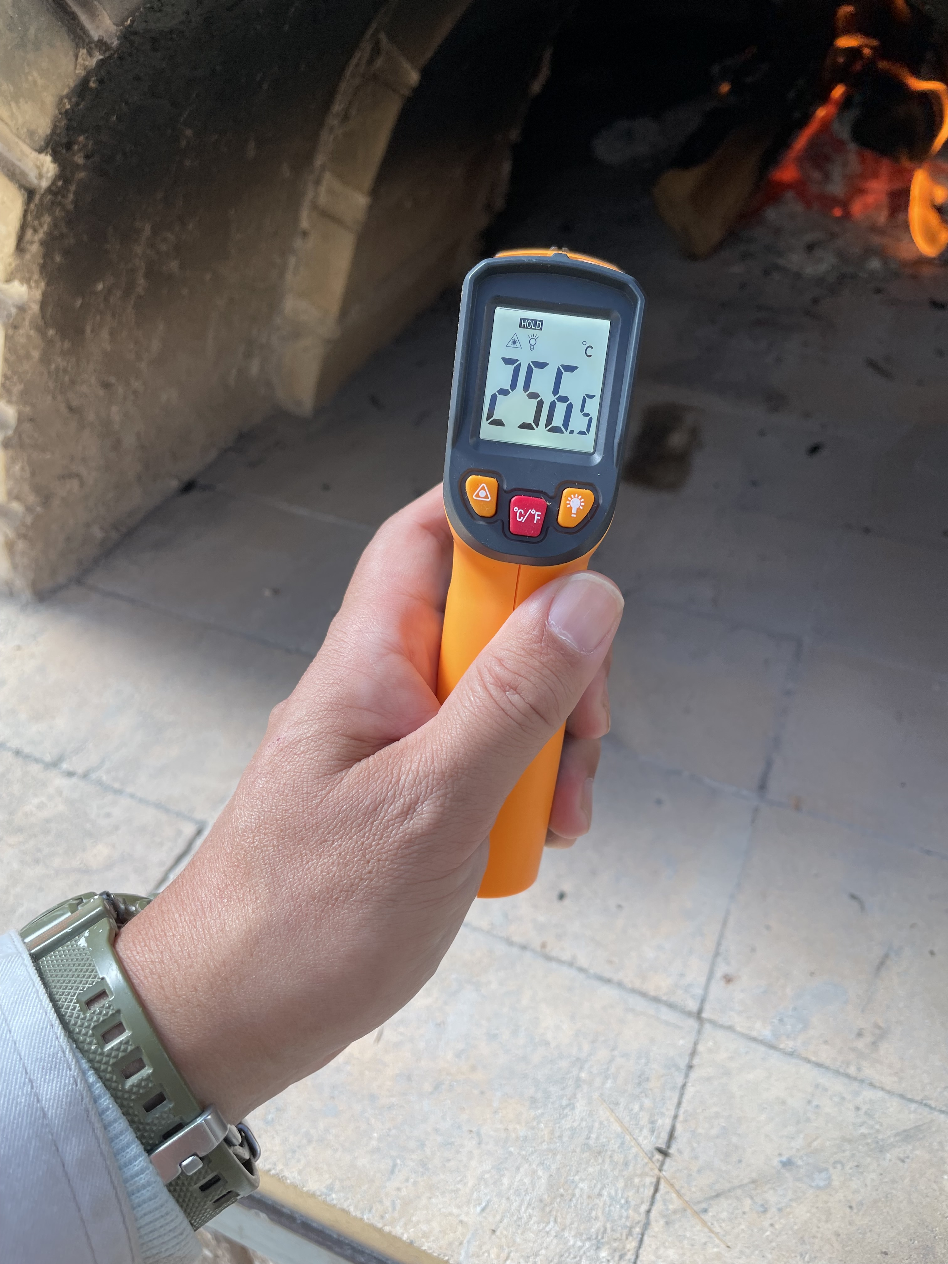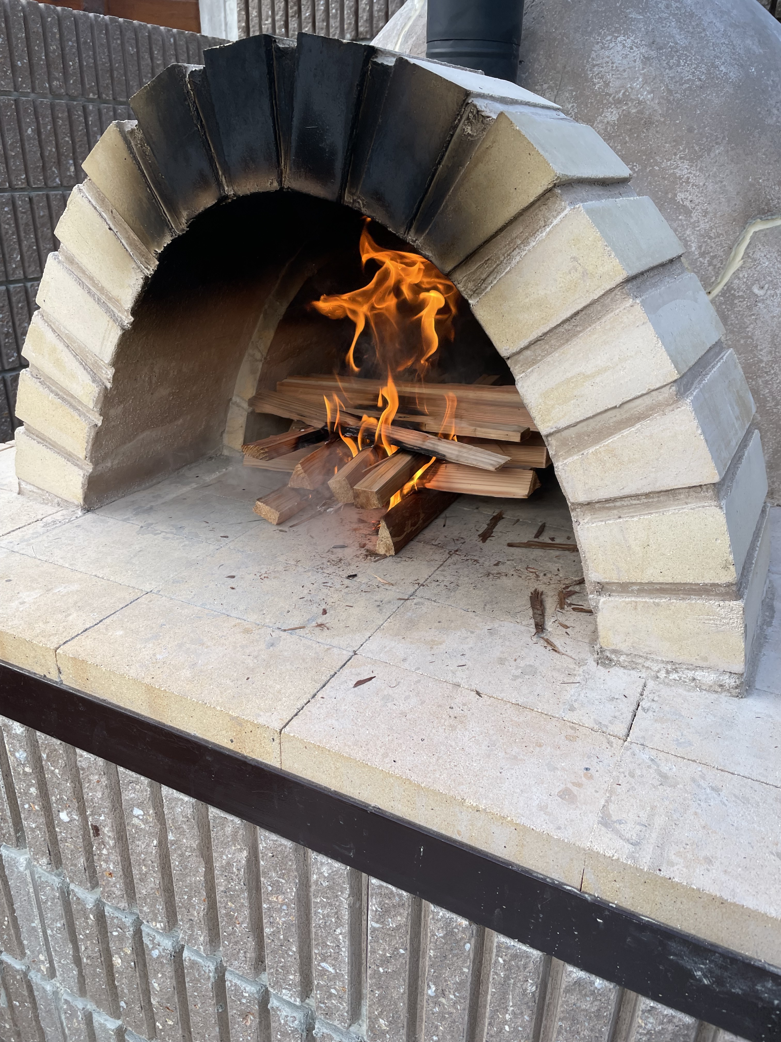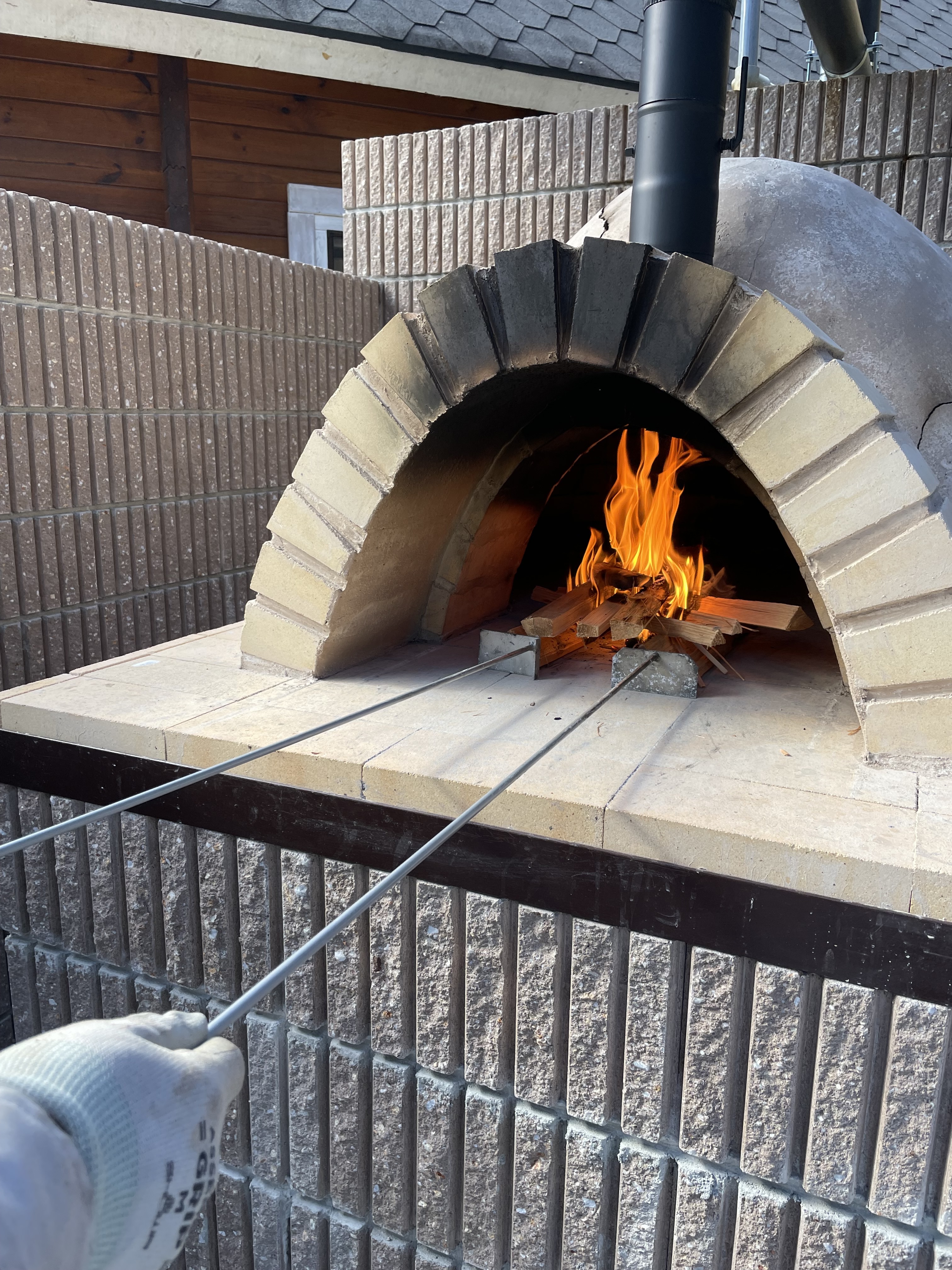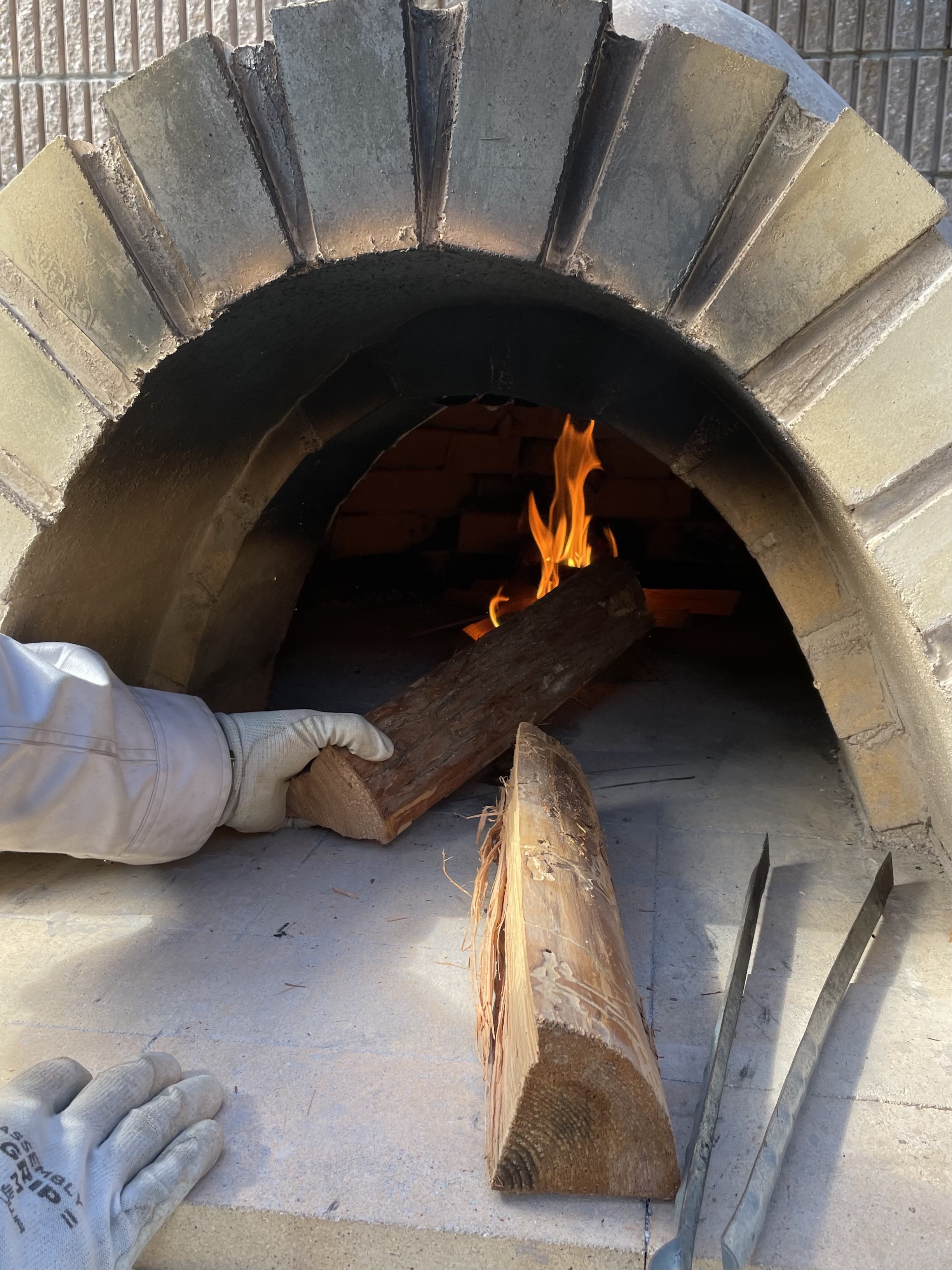 ピザ窯の火の管理は、400℃達成までの2時間、目を離せません。
