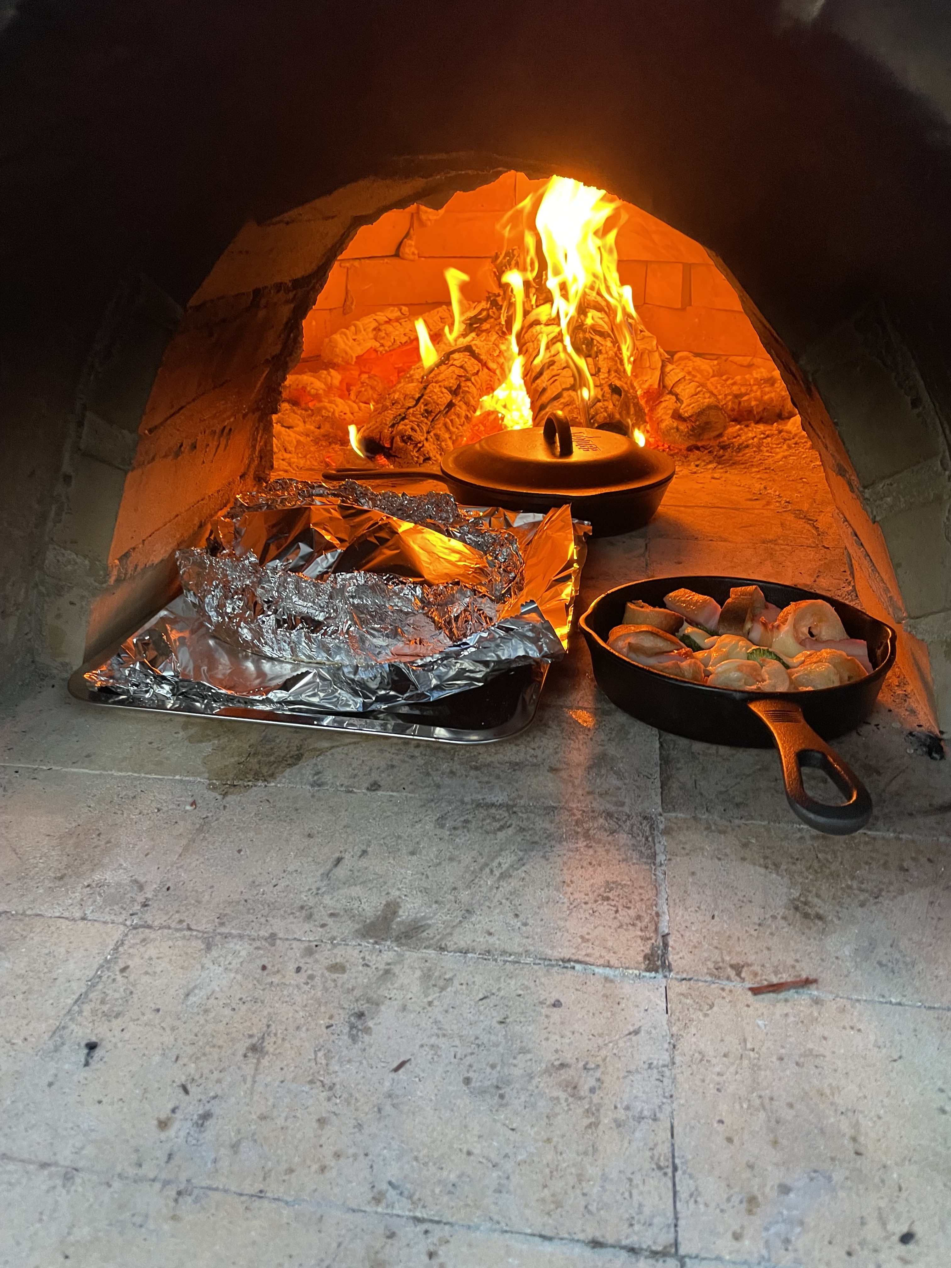 ピザ窯使えそうならば、バーベキューの食材を焼く!