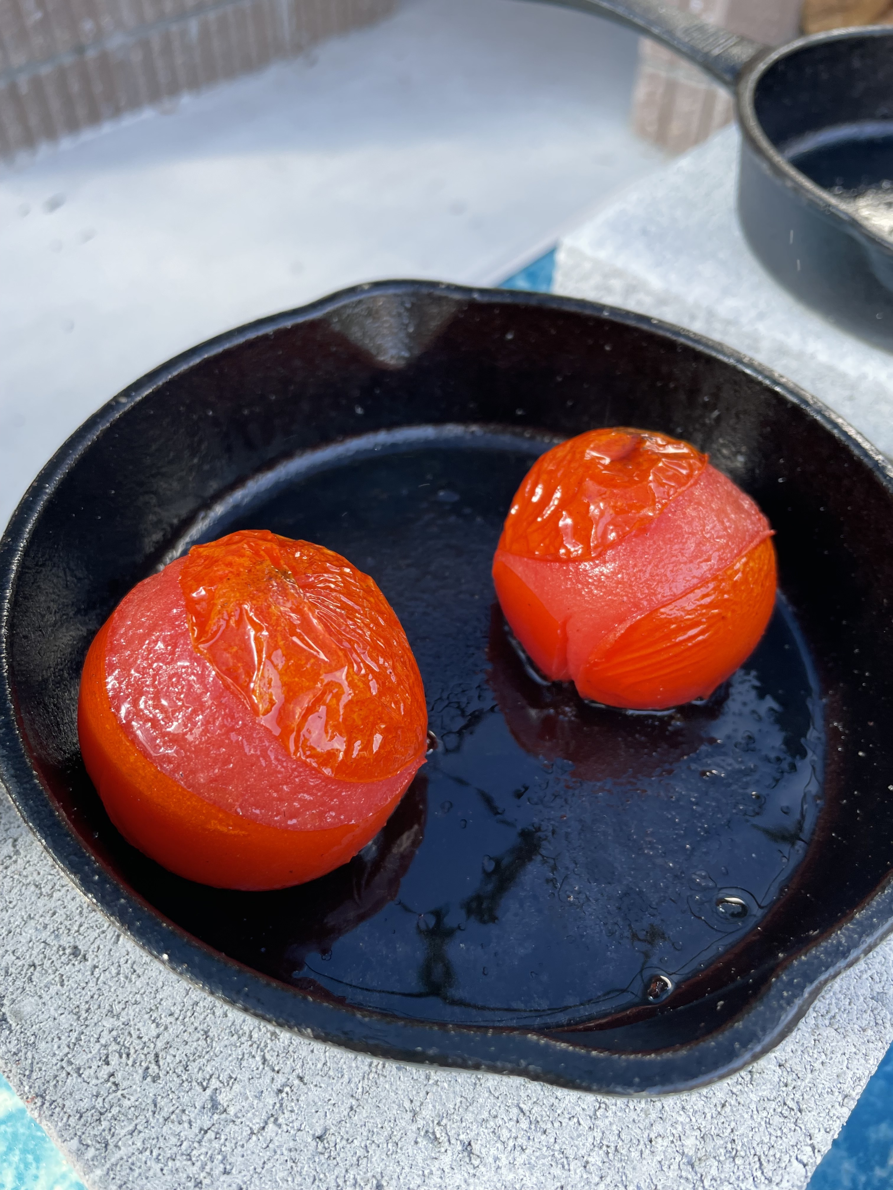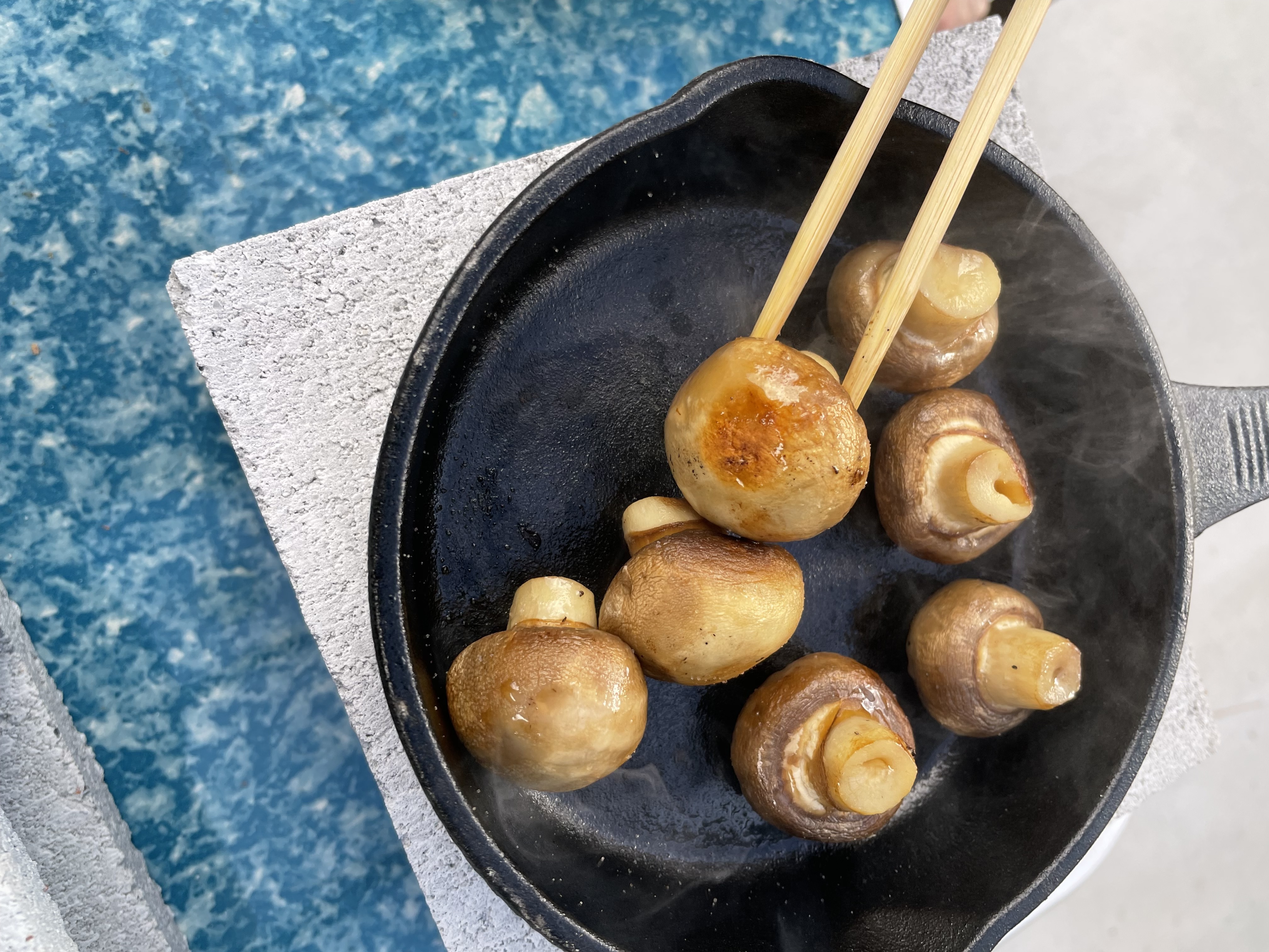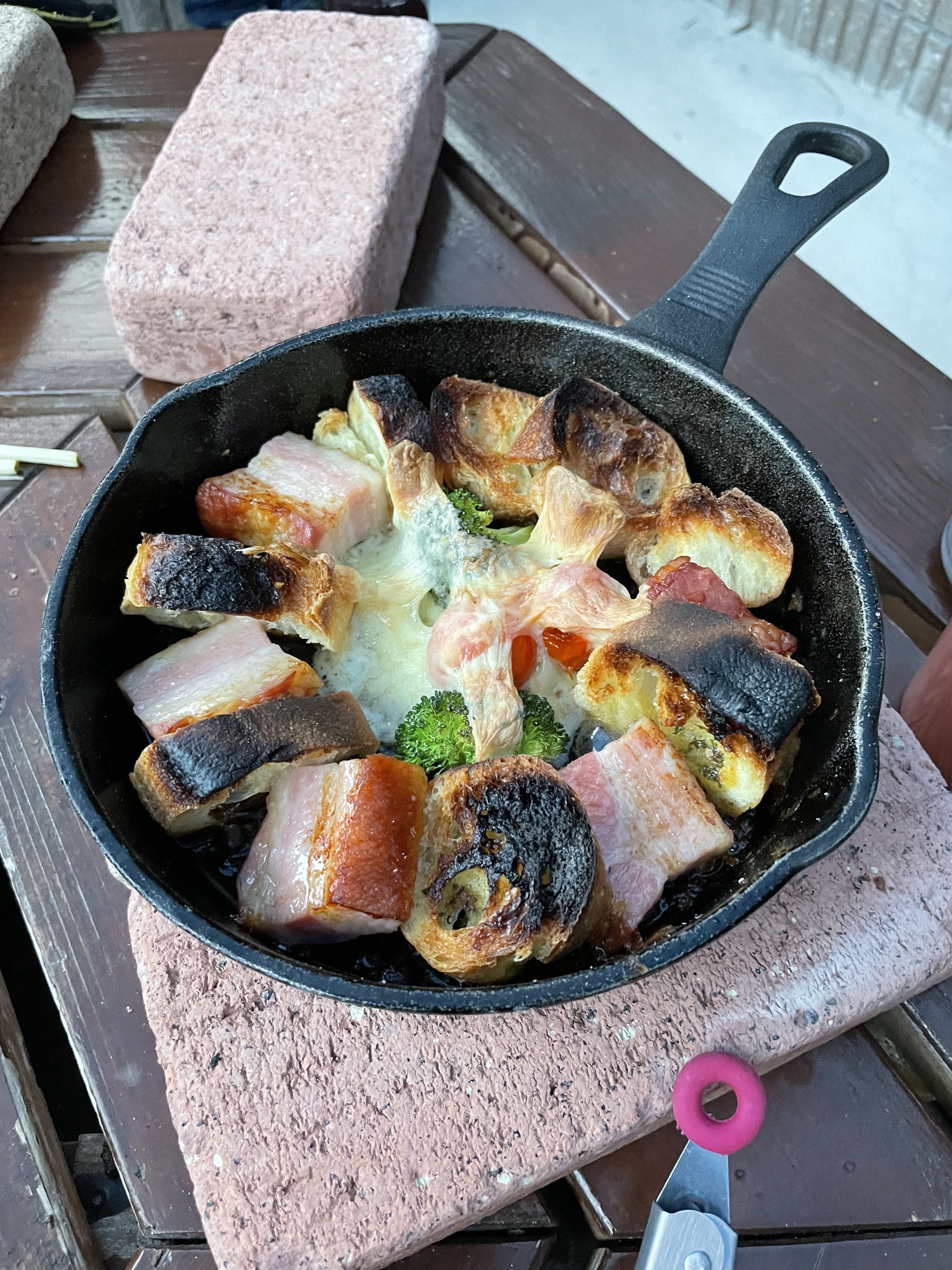 そちらに鉄スキレットを置いてください。(台が焦げる為)