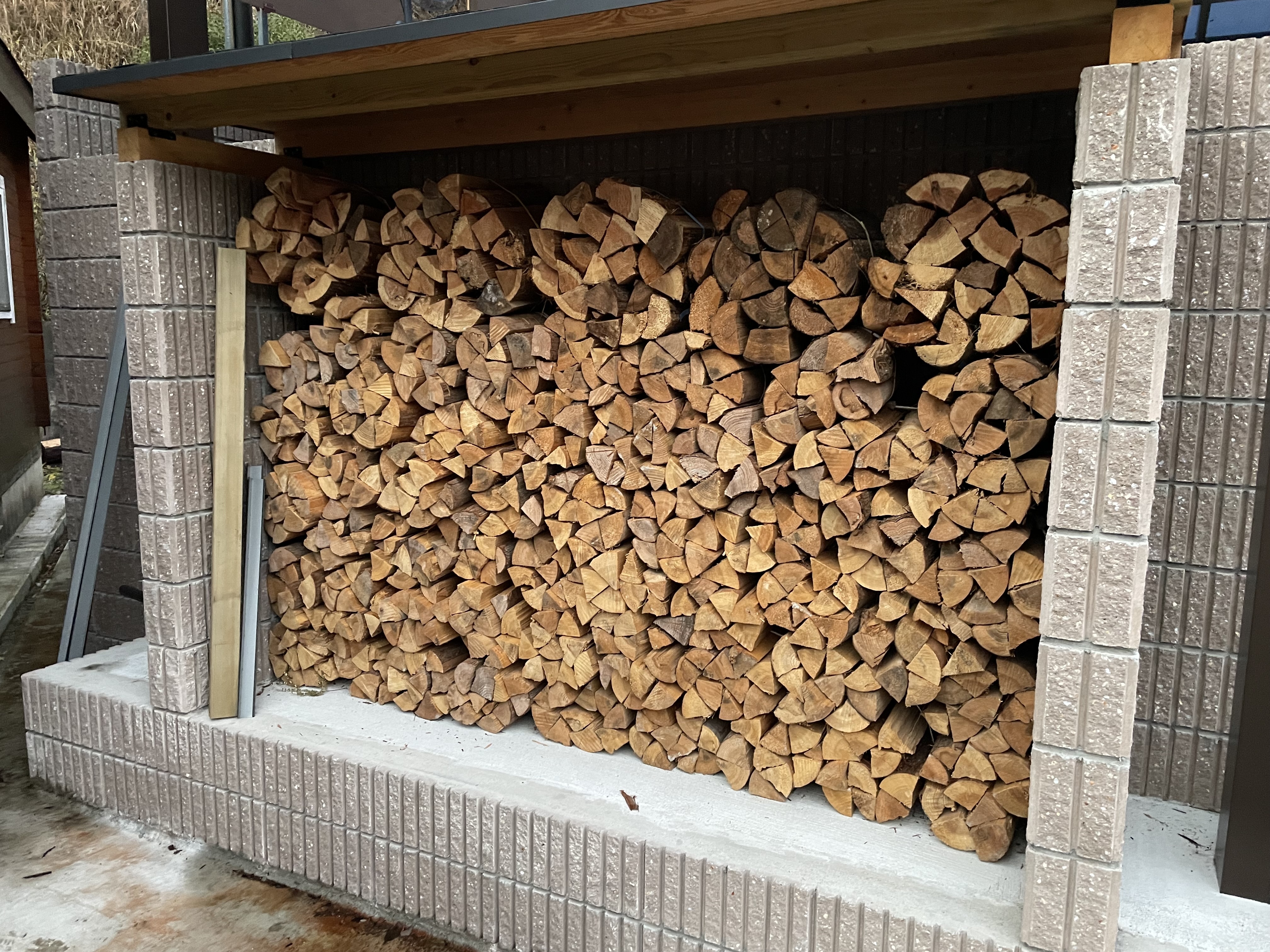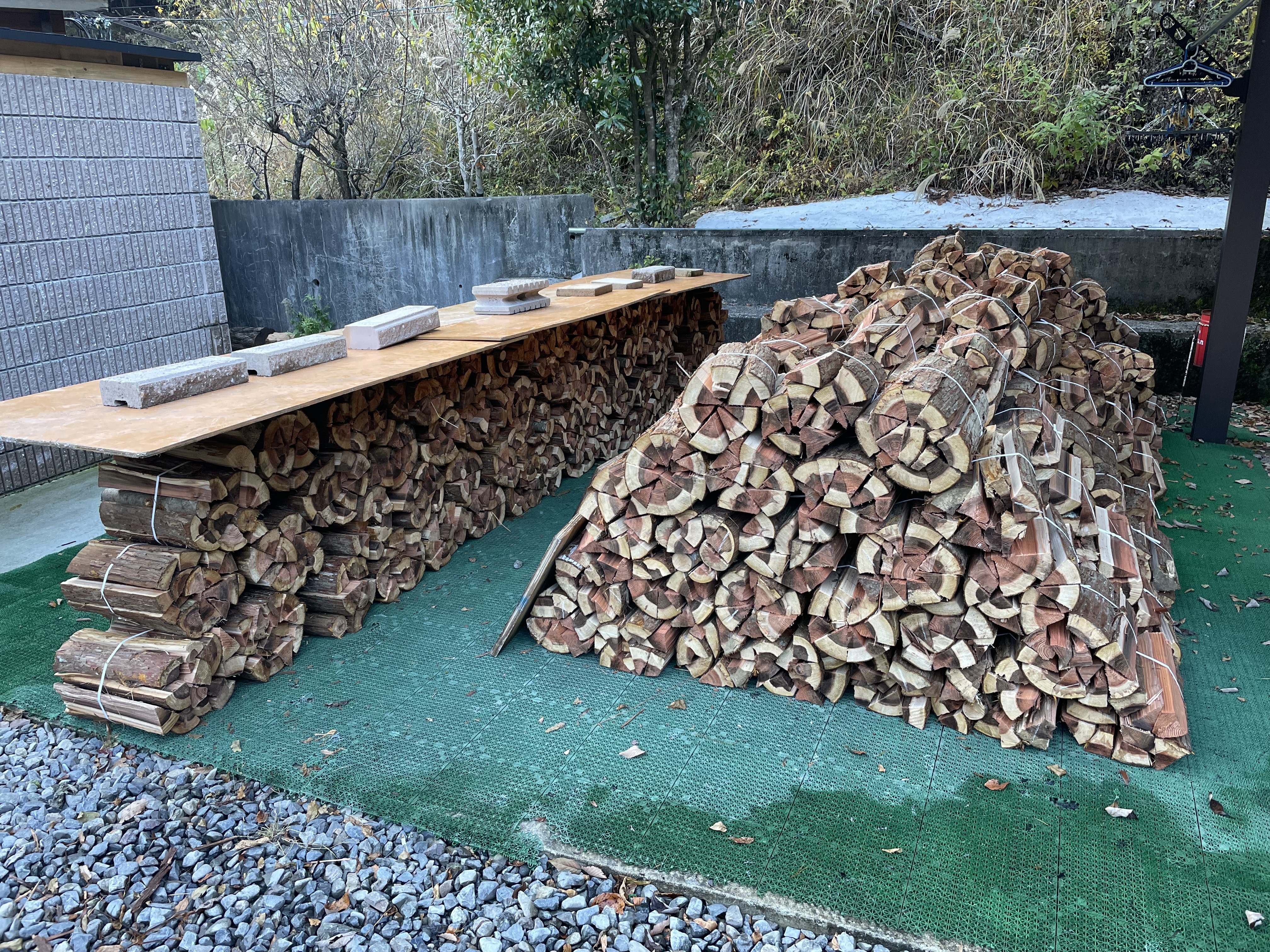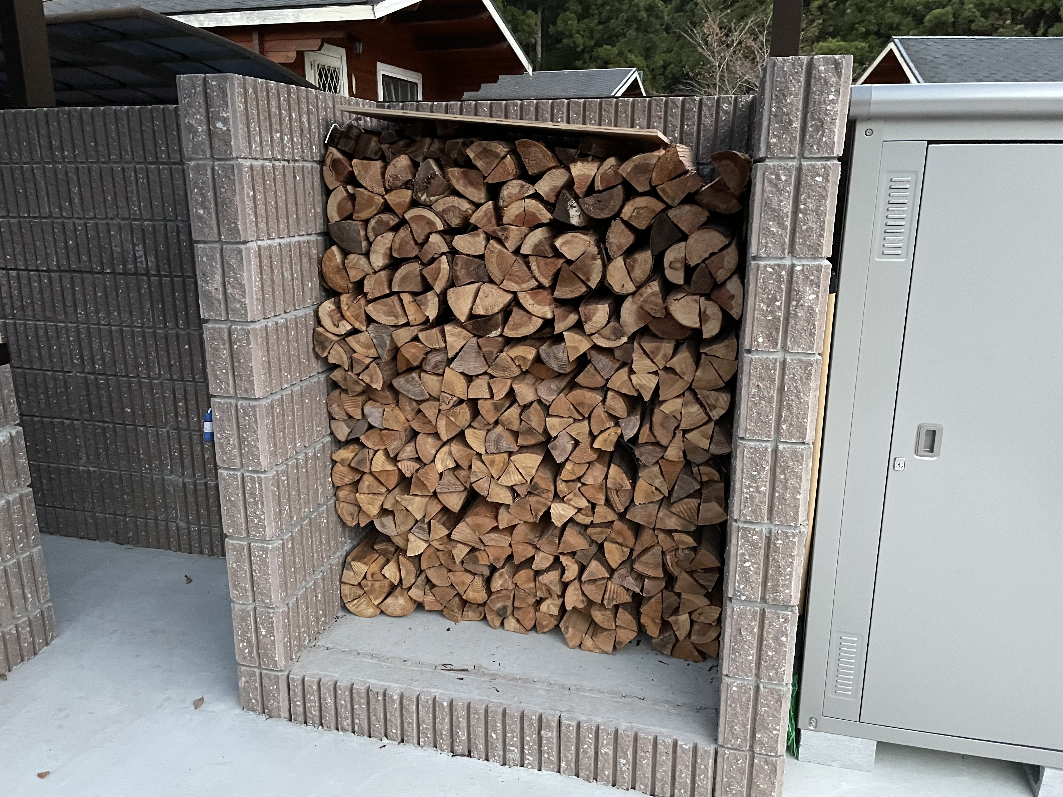 コテージの薪は針葉樹(杉)です、燃やすとパチパチと