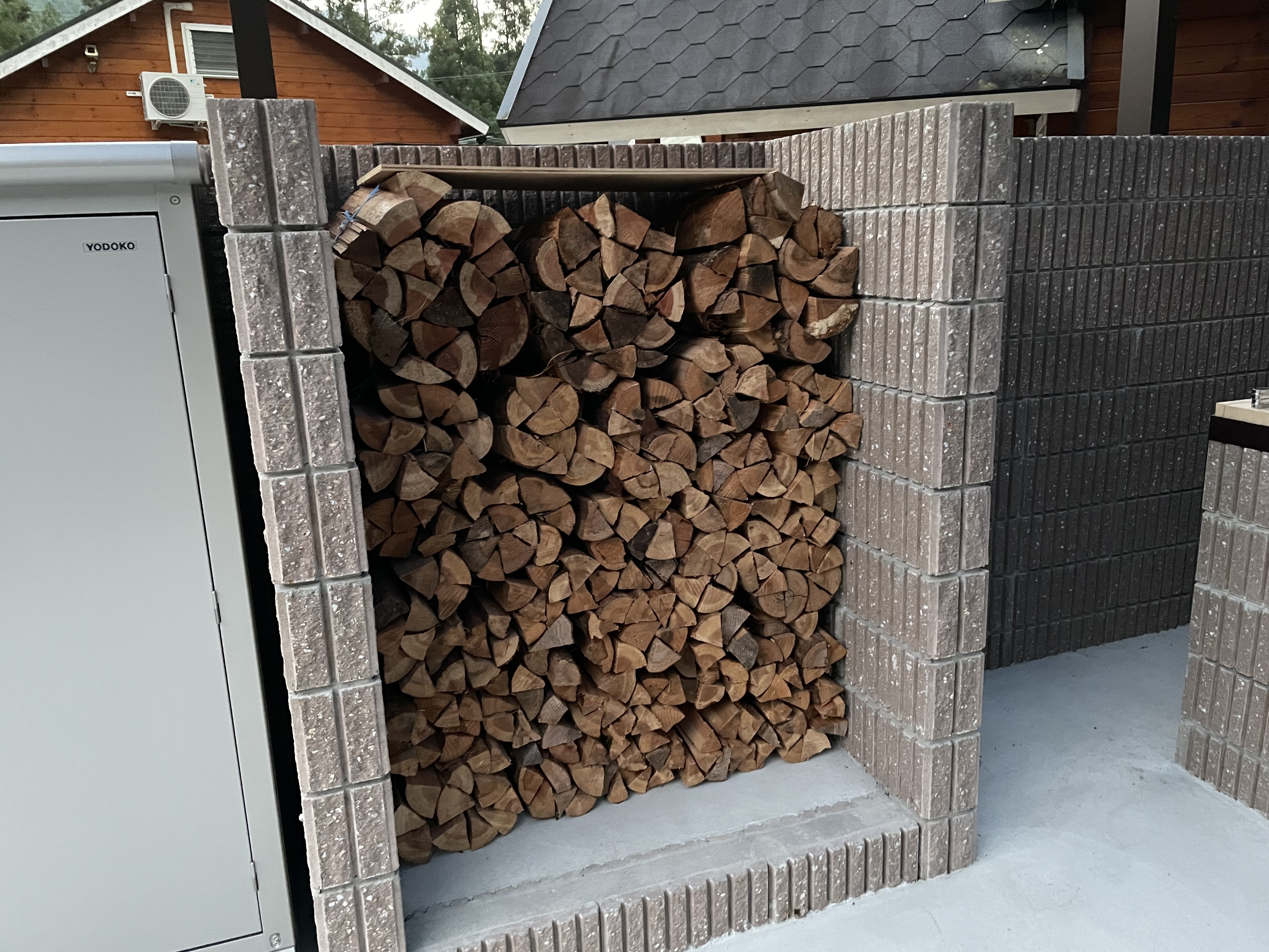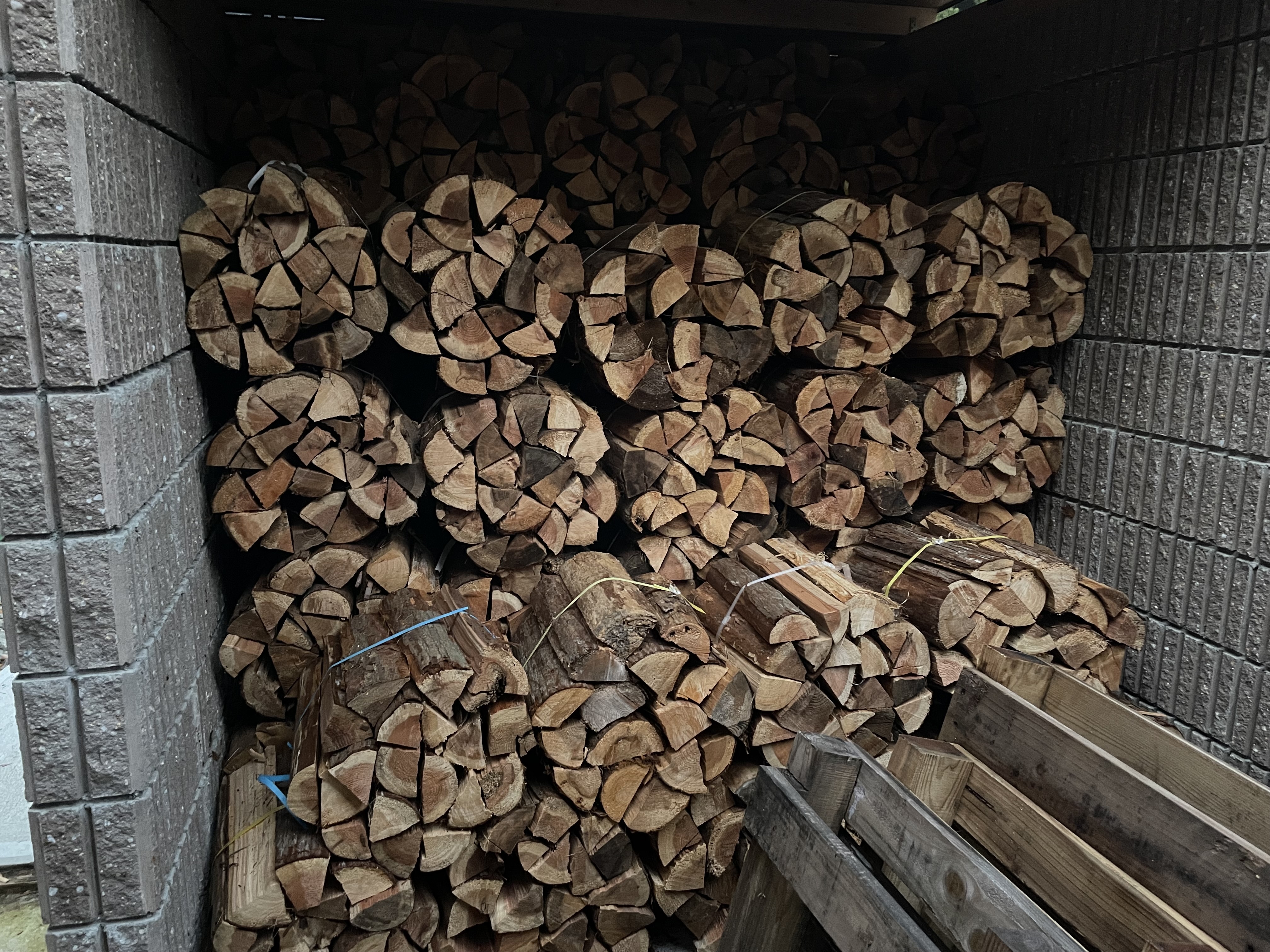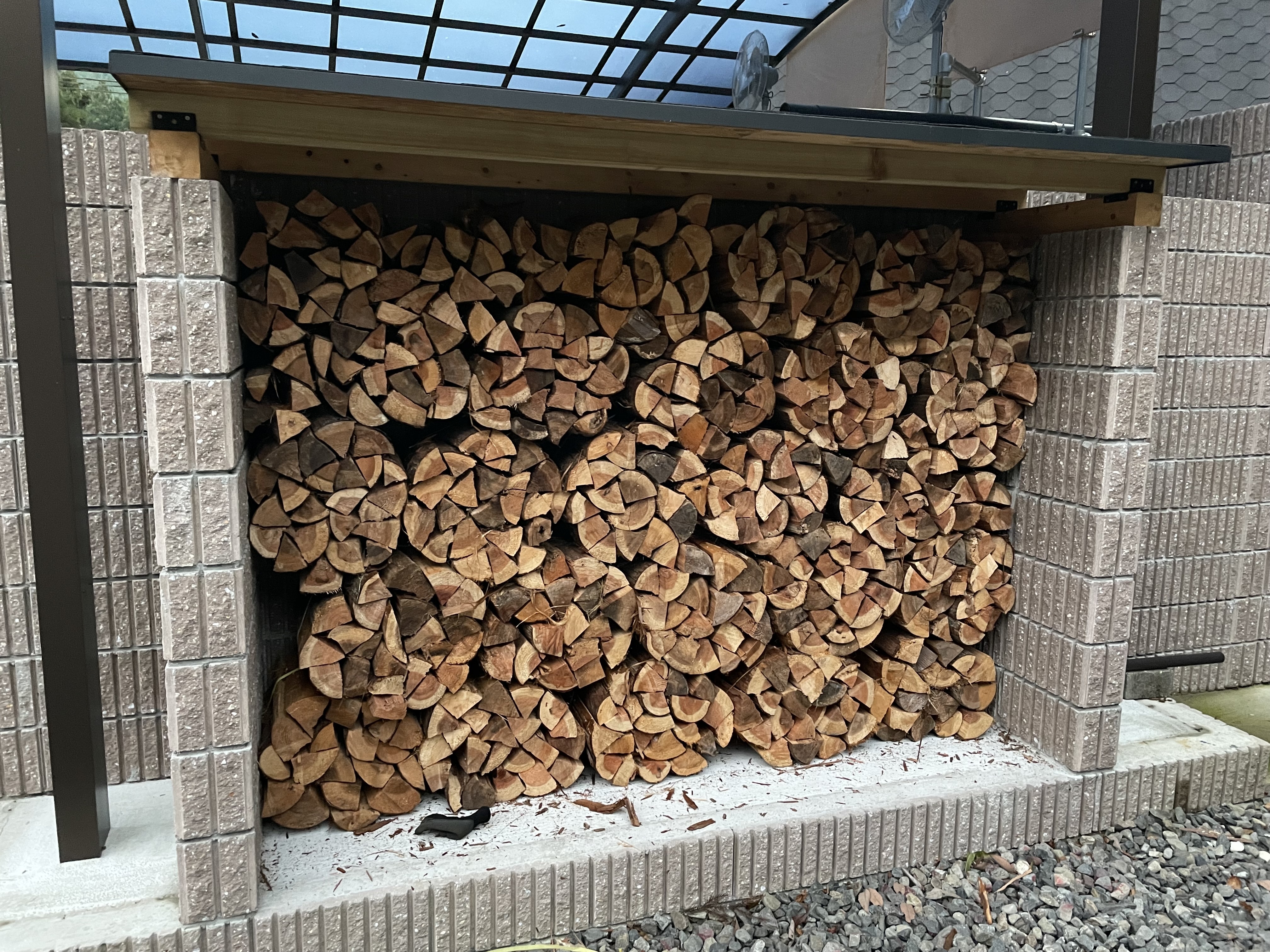コテージの薪は針葉樹(杉)です、燃やすとパチパチと
