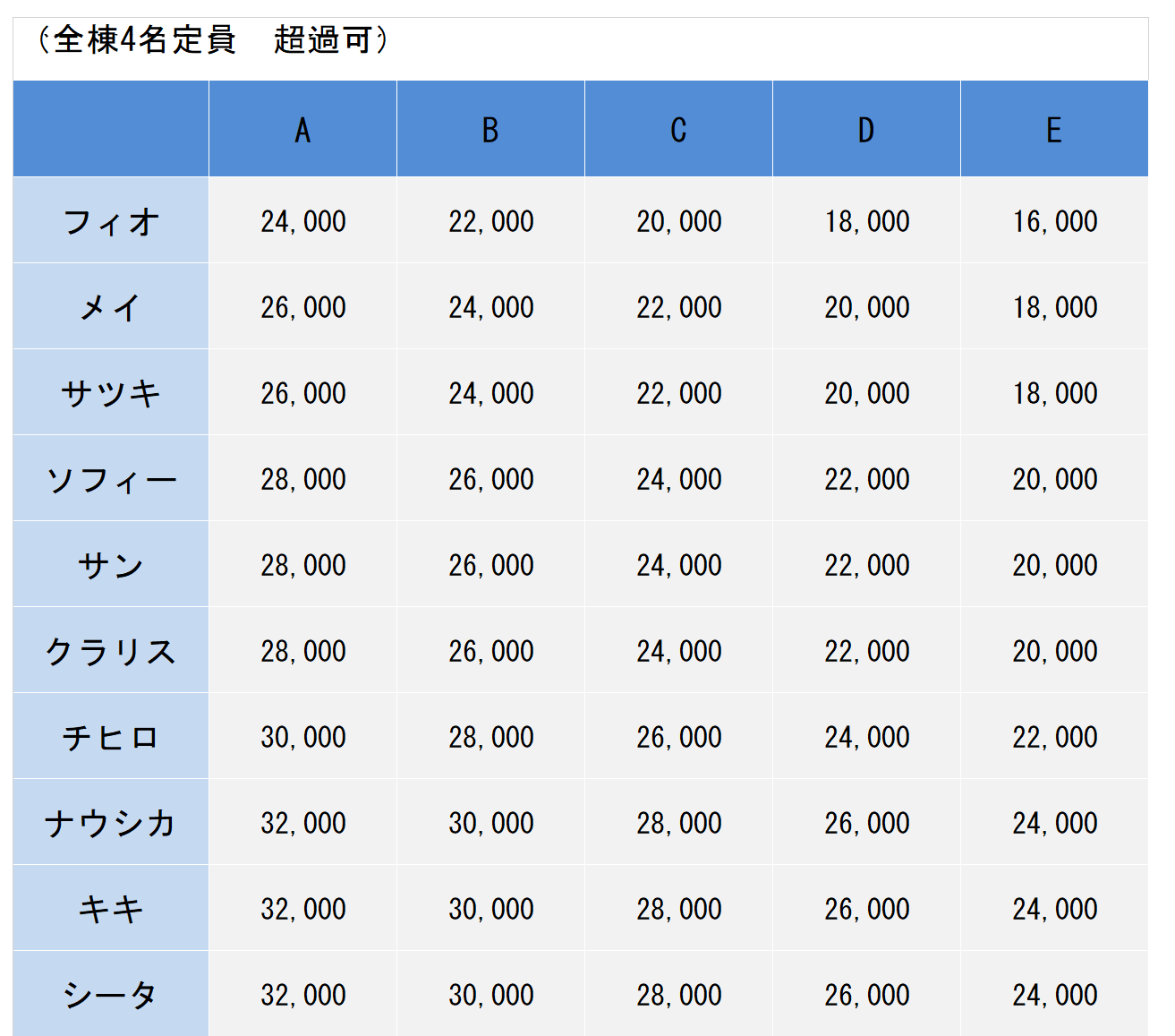 2020年より、A・B・C・D・E 料金、5種類にしました。